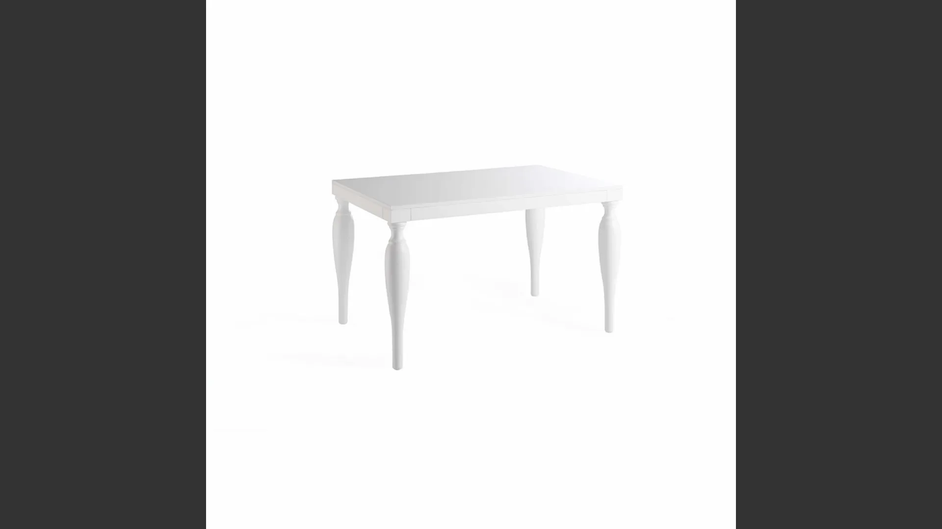 Extendable table with two 50 cm extensions and base with lacquered wooden legs and top.