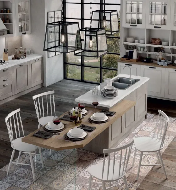 In a quality kitchen, aesthetics and functionality are equally important—and Stosa’s Virginia is a perfect example. There are numerous solutions to optimize space and facilitate every movement: open shelving alternating with spacious base and wall units, columns integrating appliances, pull-out drawers, fully equipped islands, custom-shaped wall units around the hood, and corner modules. Despite the incredible storage capacity of each configuration, the overall effect remains light and balanced—thanks to meticulous design attention to every detail.
