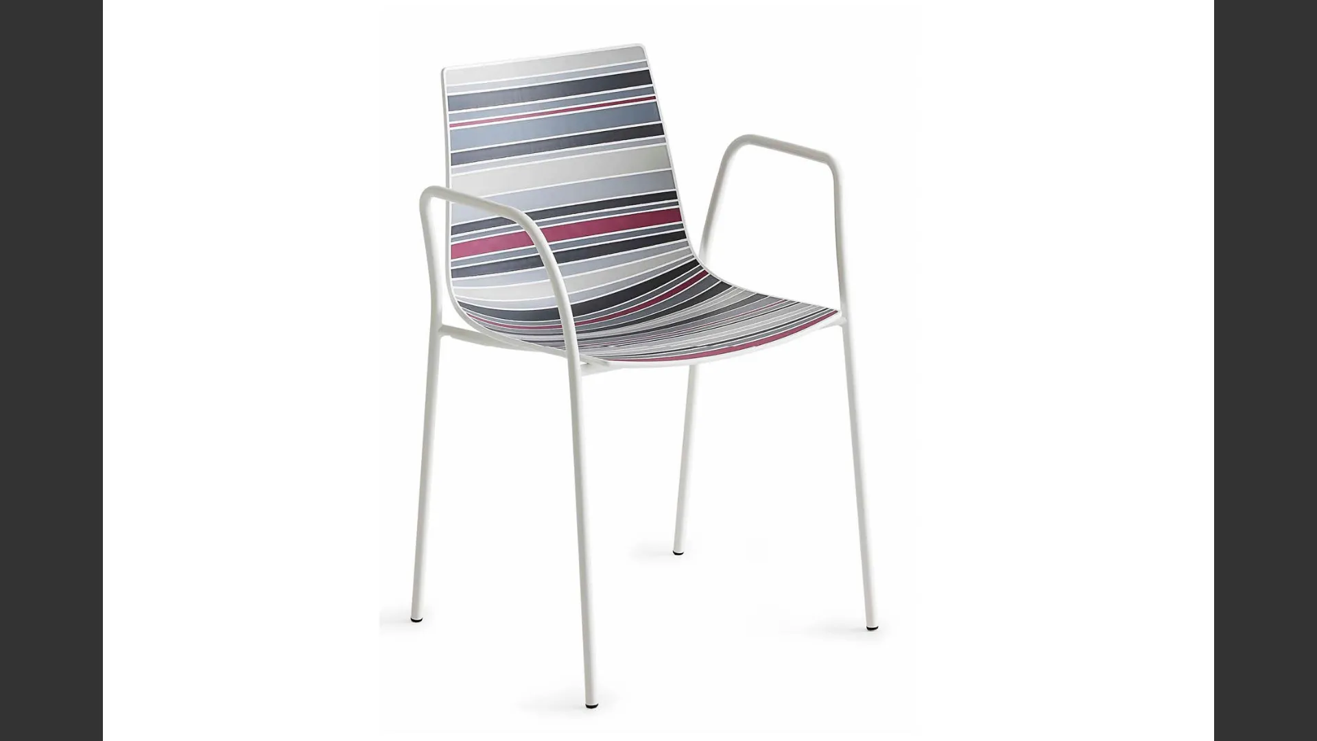 Chair with white painted metal structure and technopolymer seat. Chair with chromed metal structure and technopolymer seat.