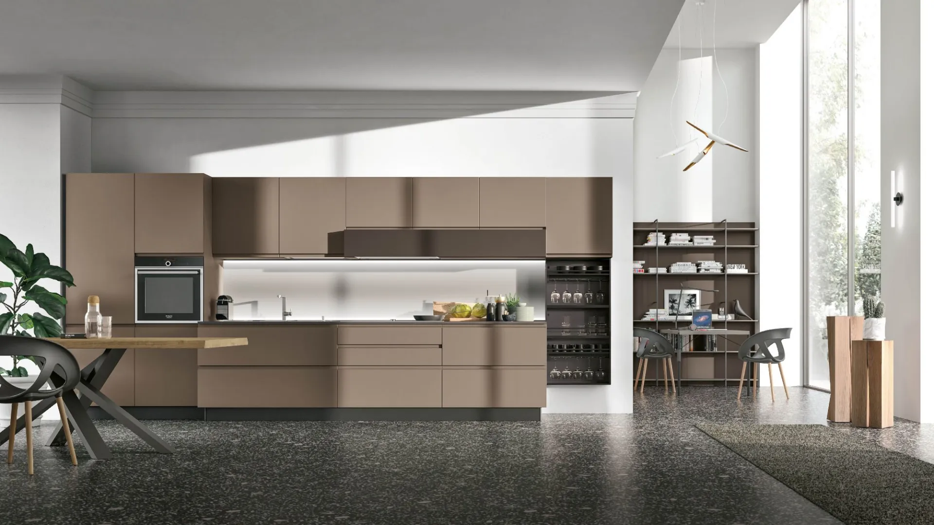 The 60 cm door and the 36 cm basket can have either a continuous or partial integrated handle. This aesthetic detail allows to give dynamism to the kitchen fronts, creating a play of lines that still maintain functionality intact.